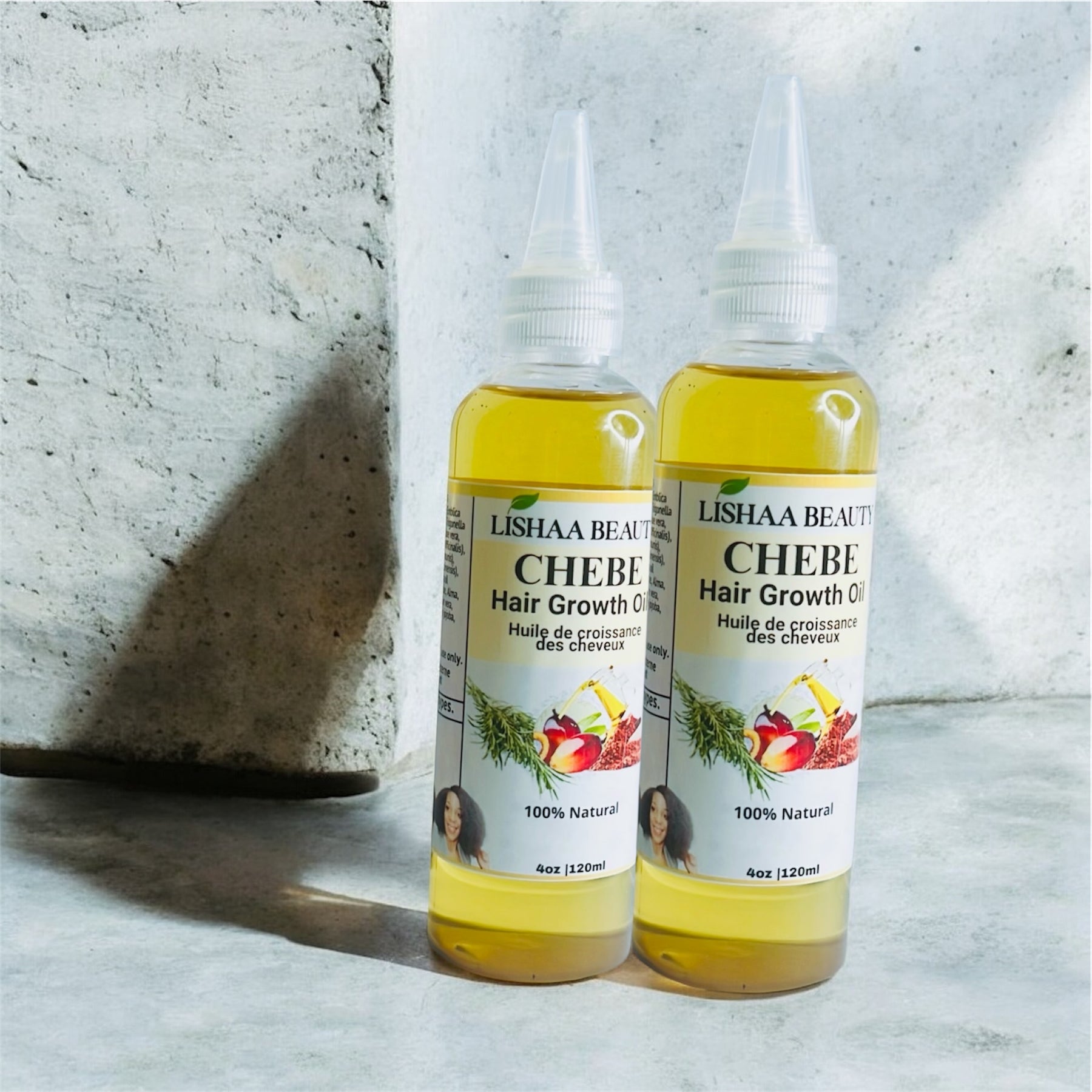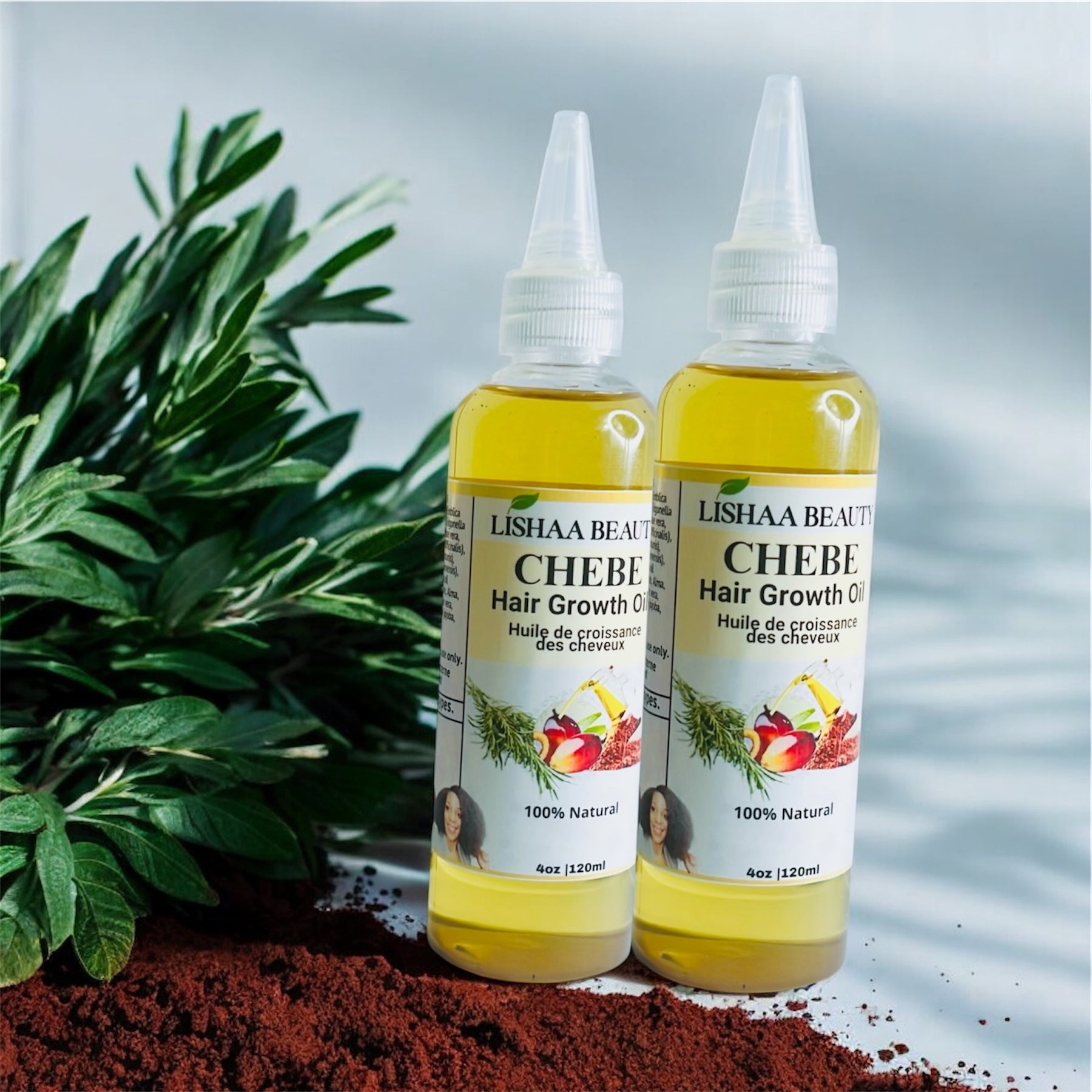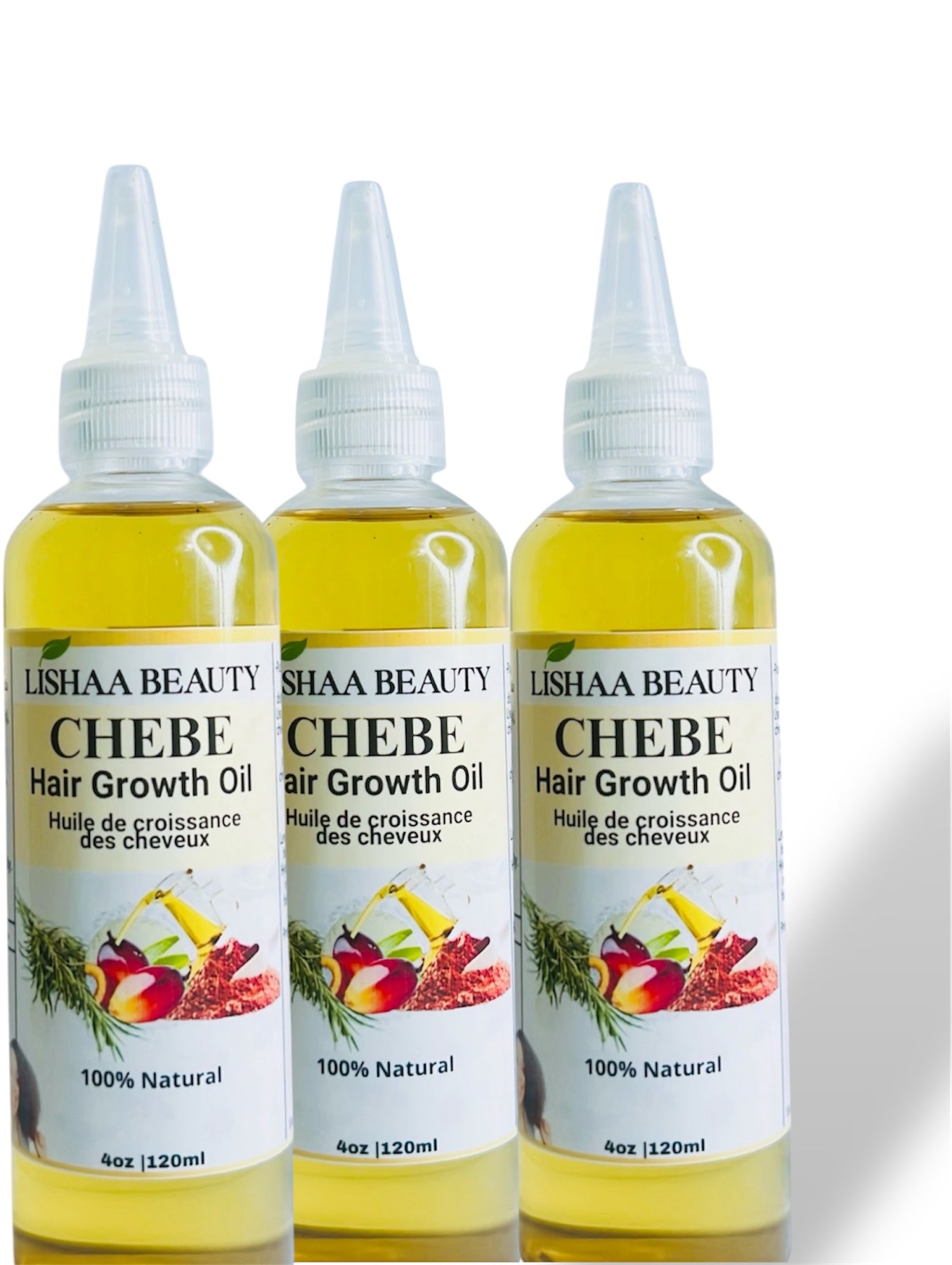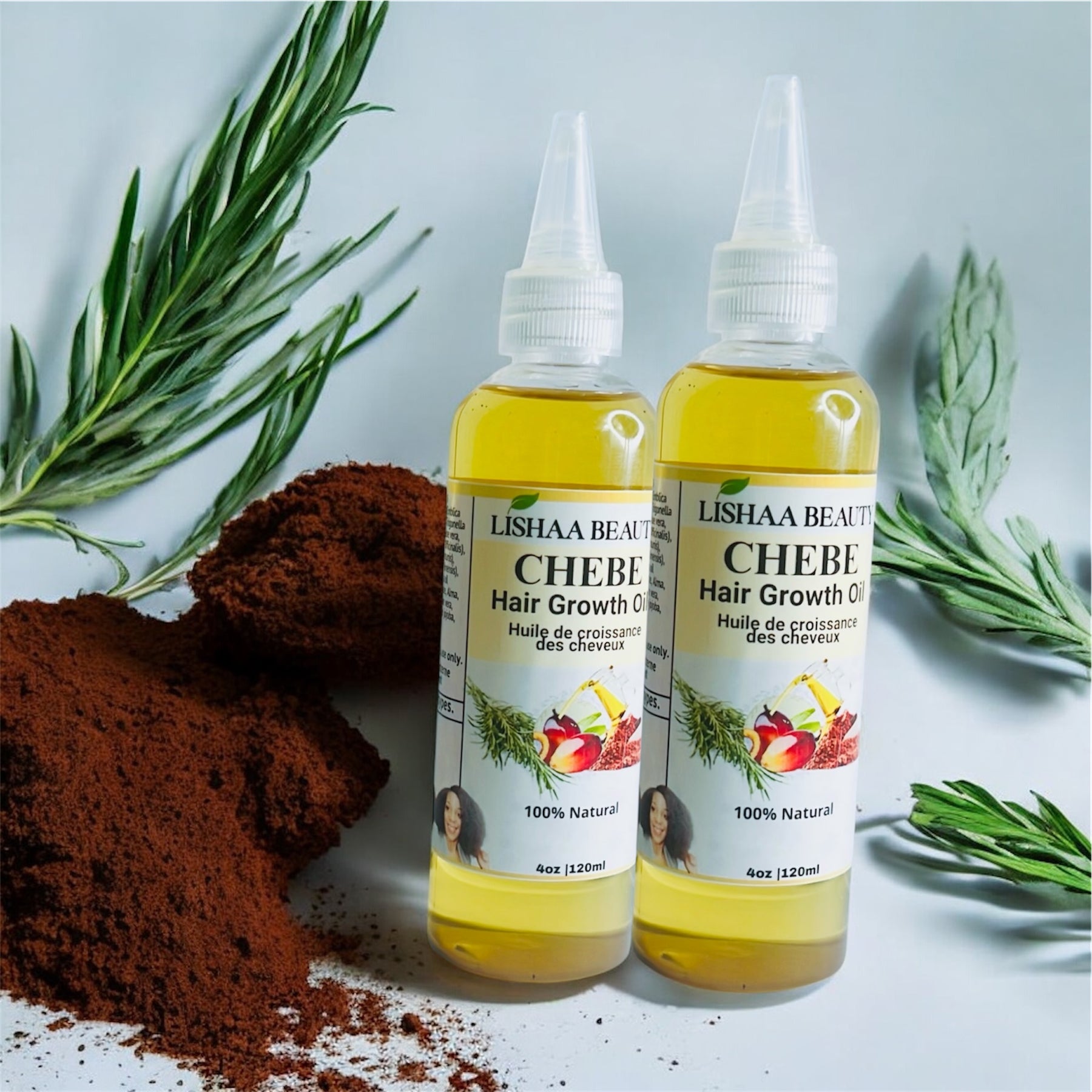 Distilled water, Aloe vera gel, Chebe powder, Shea Butter , Fenugreek powder, Amla Powder, Flex seeds, Rosemary, Olive, Ylang Ylang oil, Argan oil organic, Grapeseed oil, Germall plus, Chebe oil, Ginger oil essential oil, Fenugreek Oil, and Jojoba Oil. Castor oil, Almond oil, Vitamin E oil, Organic essential blend oil.