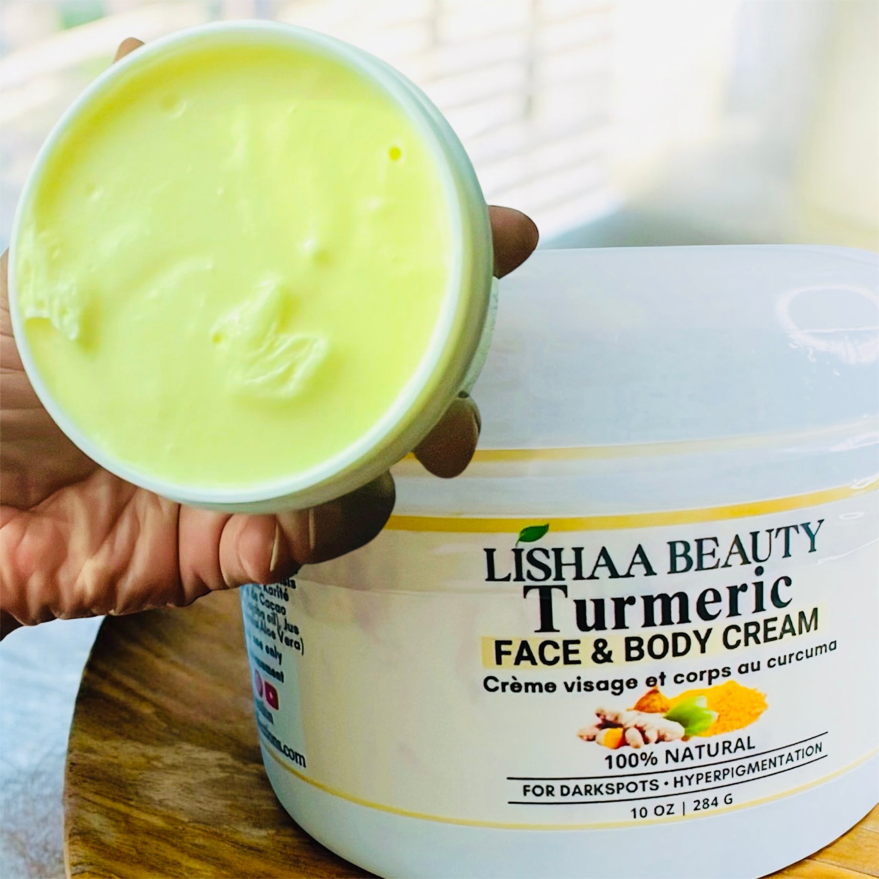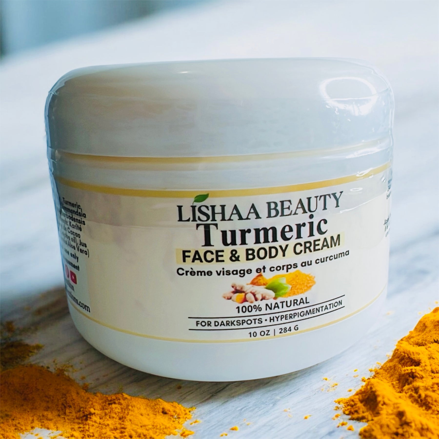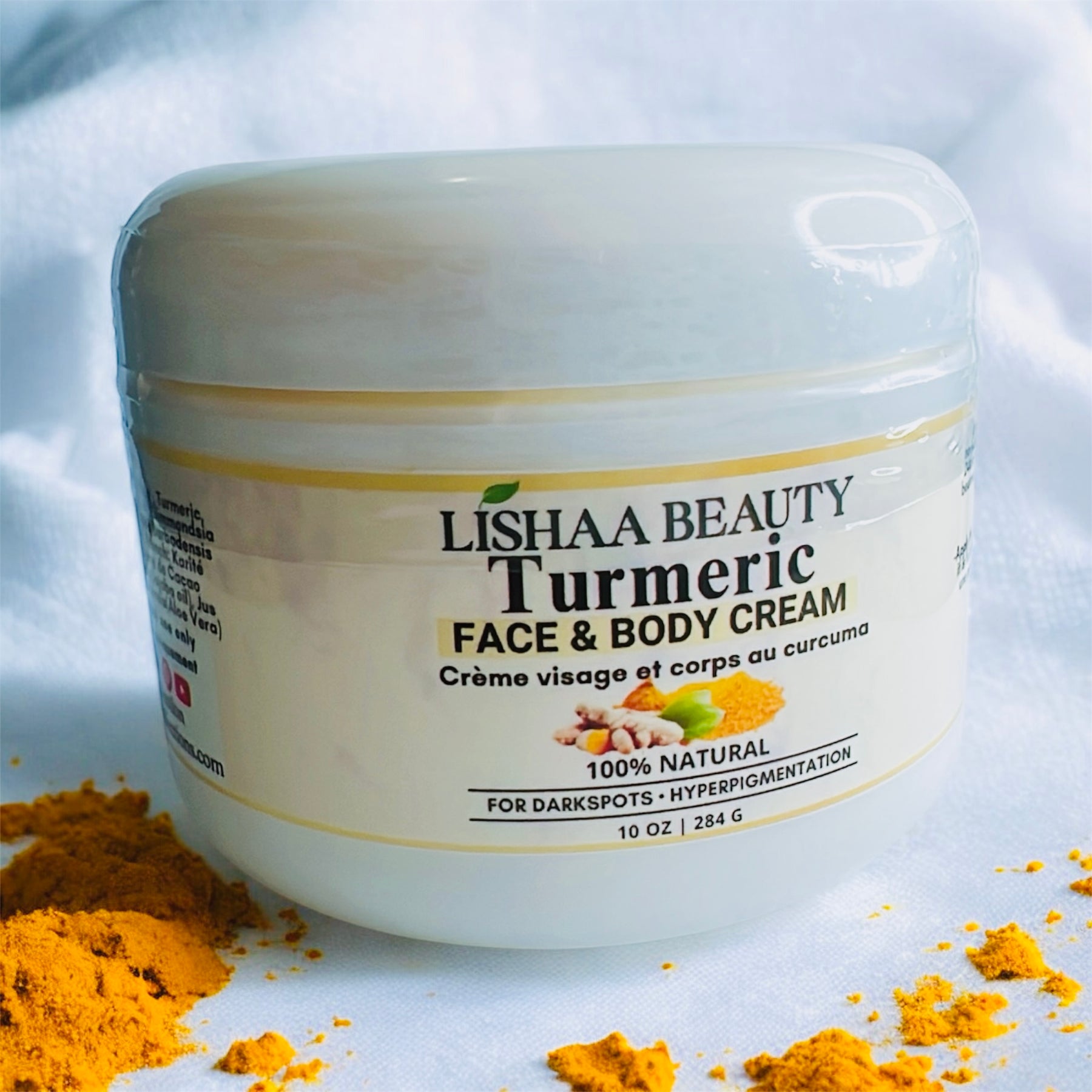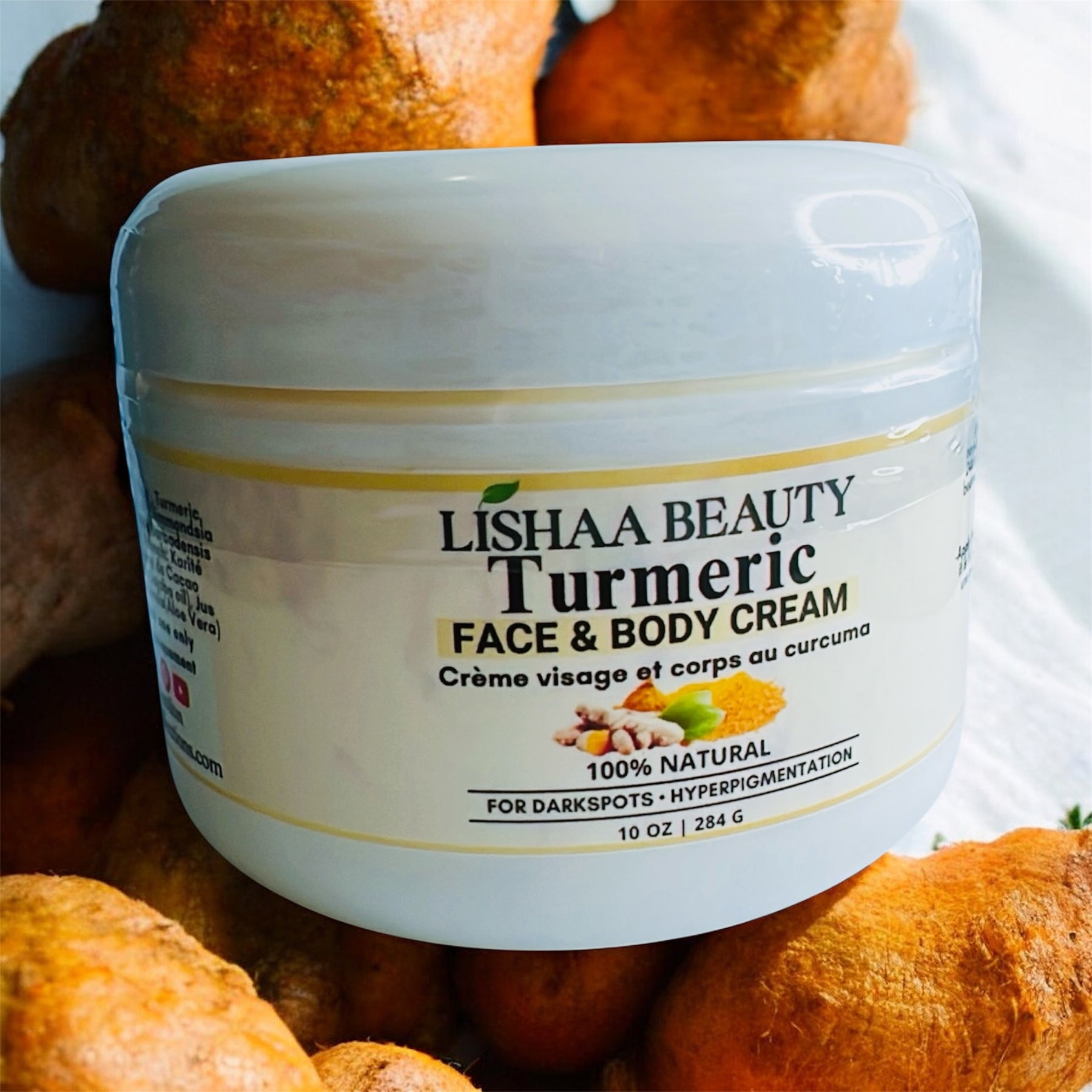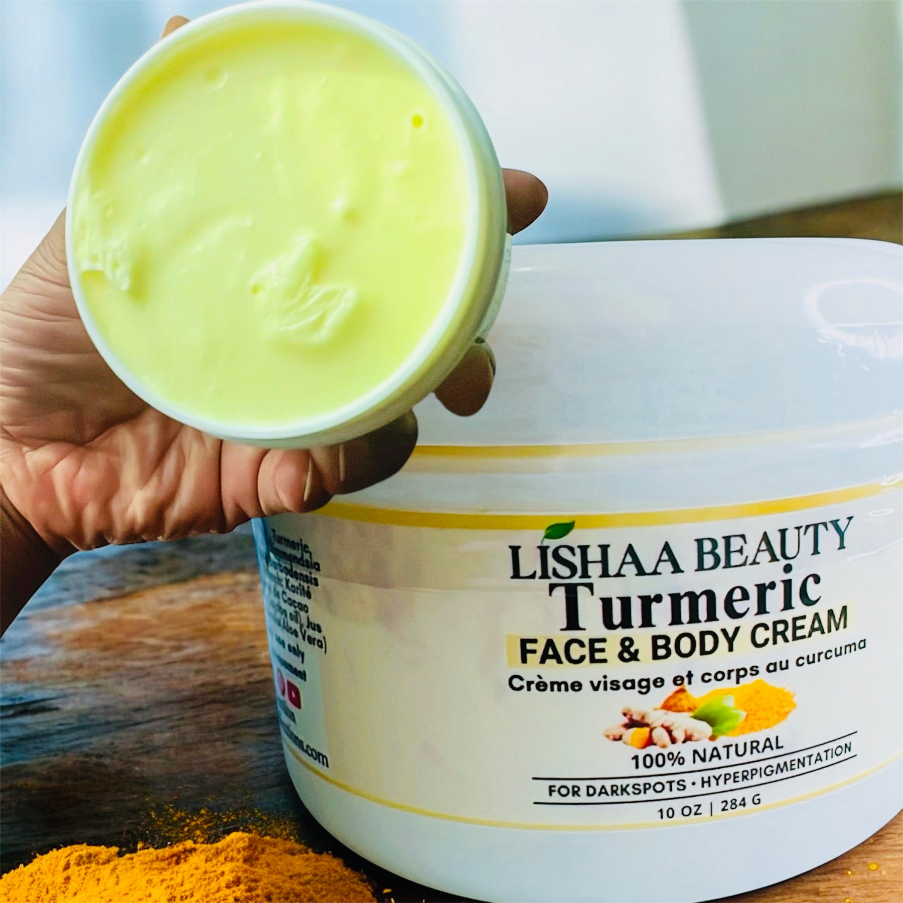 Our "Turmeric cream" for fading dark spots and hyperpigmentation."